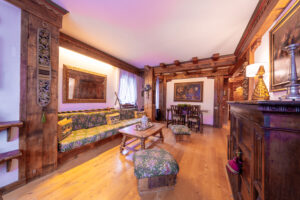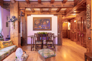 A pochi passi dal cuore pulsante di Cortina d’Ampezzo, questo elegante appartamento ti accoglie in un’atmosfera autenticamente ampezzana. Il soggiorno, impreziosito da rivestimenti in legno pregiato e un soffitto interamente ricoperto di pannelli in caldo legno, crea un ambiente intimo e raffinato. L’area living è perfetta per rilassarsi dopo una giornata sulle piste o tra i sentieri, offrendo uno spazio conviviale in cui ritrovarsi in famiglia o con gli amici.